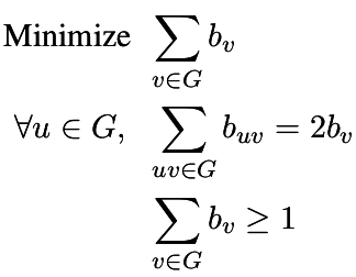 p.add_constraint( sum([b[Set([e])] for e in edges]) == 2*b[v] )